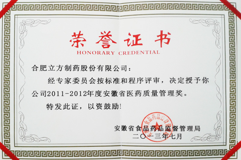 2011-2012省醫(yī)藥質(zhì)量管理獎(jiǎng)