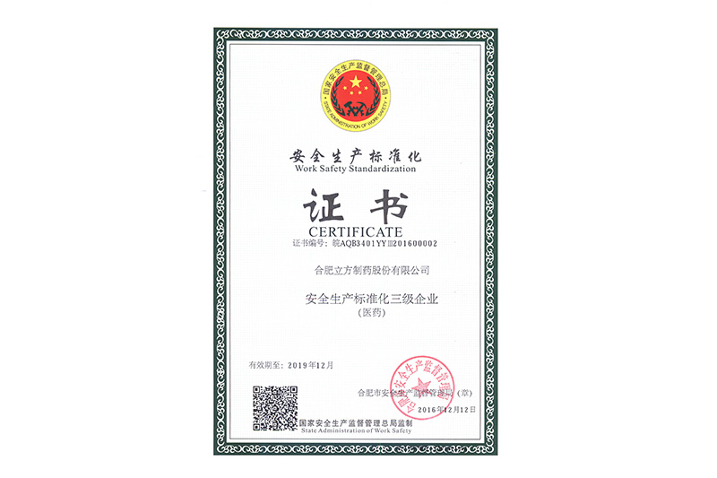 2016安全標(biāo)準(zhǔn)化證書(shū)(醫(yī)藥)(股份)